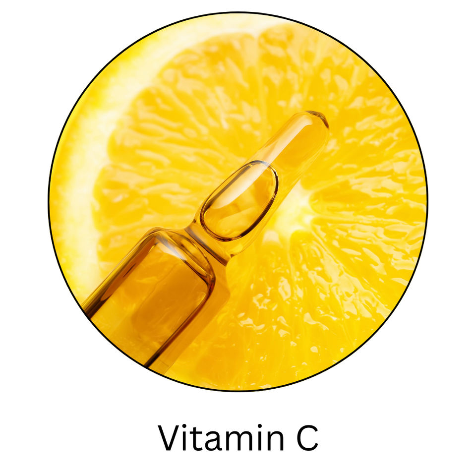 Stabilized Vitamin C & E Complex — Enhances radiance, smooths tone, protects against free radicals.